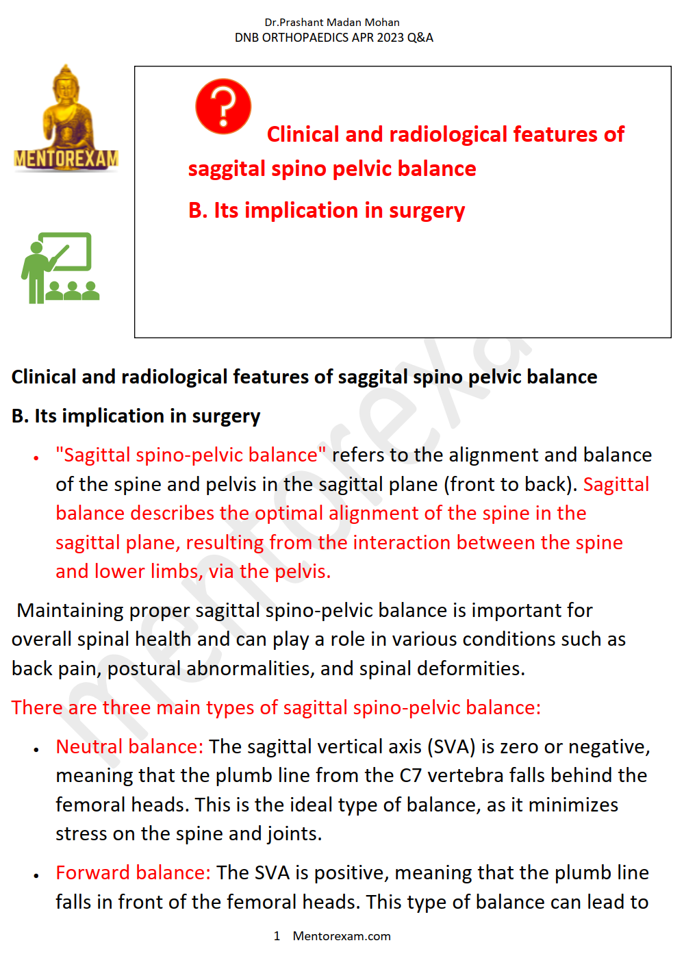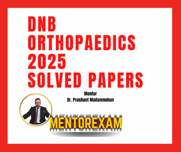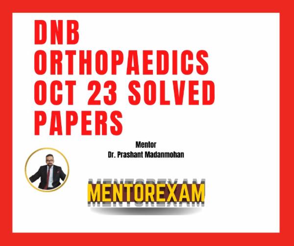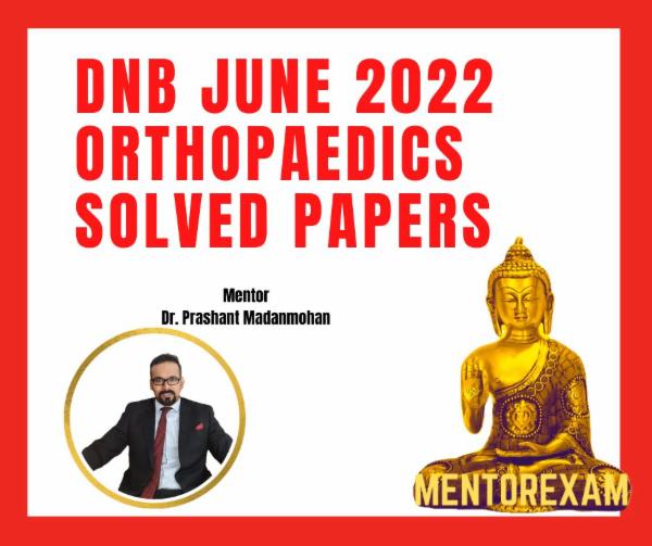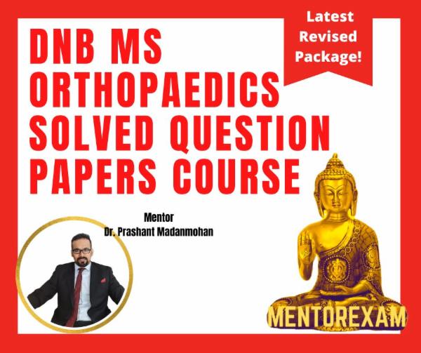 Disclaimer - Wherever possible recall questions and new questions have been solved. All question papers of all years and all questions from each paper are not available, hence can only be updated in future if learners send their recalls to mentorexam.com@gmail.com. This is an initiative to improve the pass percentage of DNB orthopaedics exams by Mentorexam.Mentorexam is not affiliated to DNB or NBE or NMC.These questions are representative of real exam and are not claimed to be from the real exam, any resemblance is coincidental and Mentorexam does not take any responsibility for any harm or loss.This is purely for educational purpose.