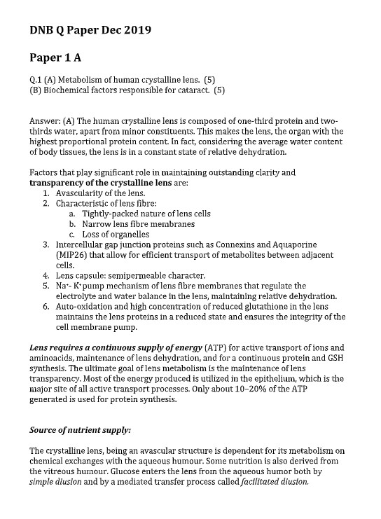 OPHTHALMOLOGY DNB December 2019 Solved Question Paper