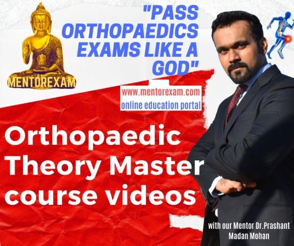 Disclaimer - Wherever possible recall questions and new questions have been solved. All question papers of all years and all questions from each paper are not available, hence can only be updated in future if learners send their recalls to mentorexam.com@gmail.com. This is an initiative to improve the pass percentage of DNB orthopaedics exams by Mentorexam.Mentorexam is not affiliated to DNB or NBE or NMC.These questions are representative of real exam and are not claimed to be from the real exam, any resemblance is coincidental and Mentorexam does not take any responsibility for any harm or loss.This is purely for educational purpose.