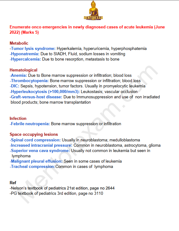 | Enumerate onco emergencies in newly diagnosed cases of acute leukemia_ (1 pages) | |||